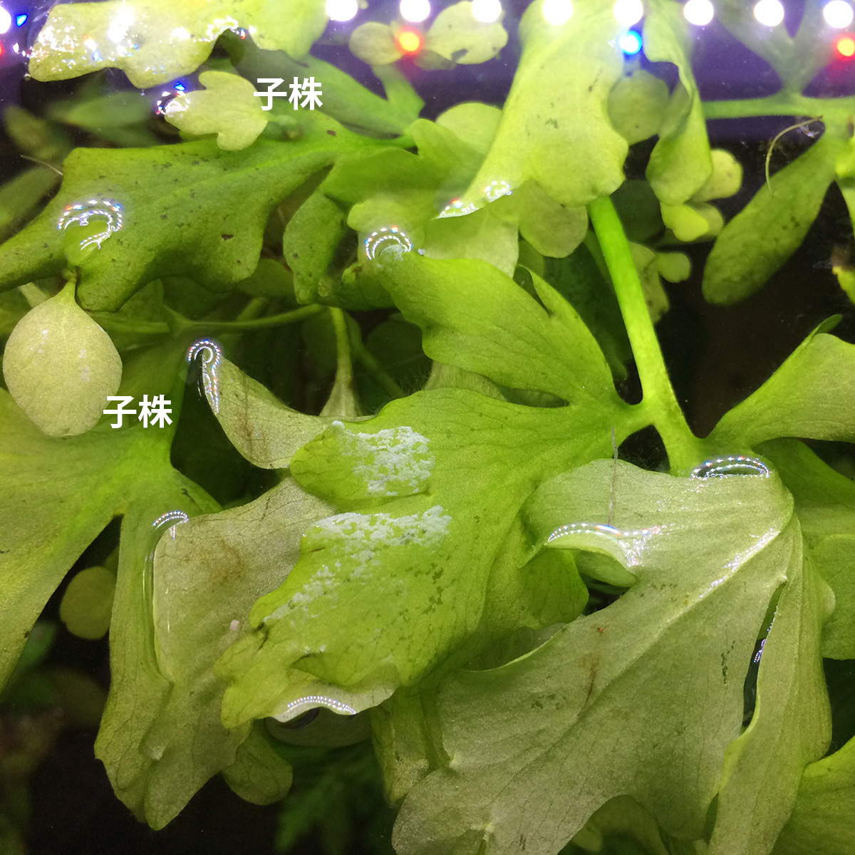 1枚の葉にいくつもの子株が付くため、これを利用して半永久的に育成することが可能です。増えすぎて水槽内で邪魔になるようなら、適度に間引いてください。