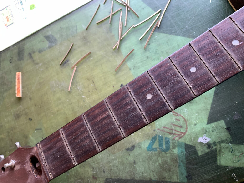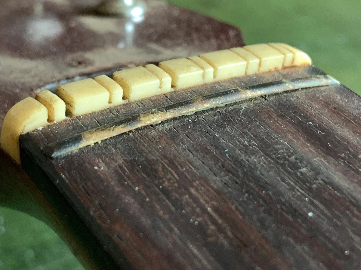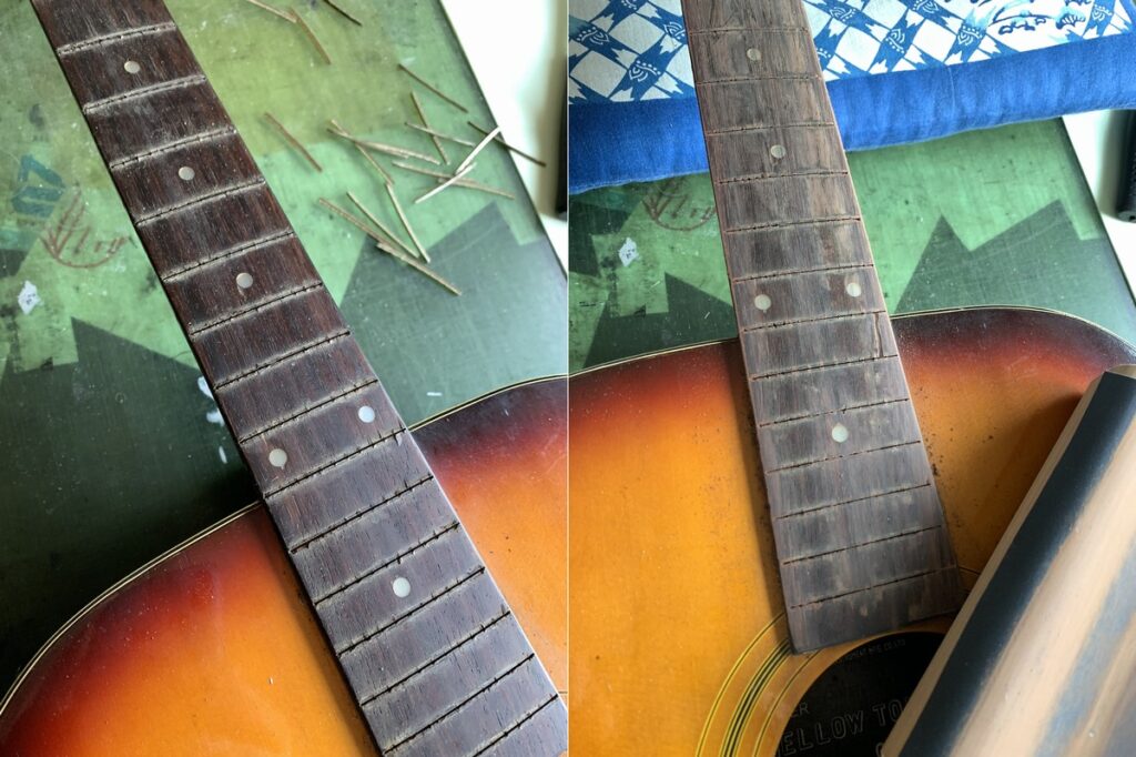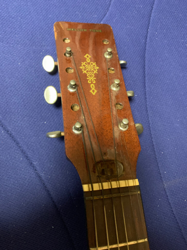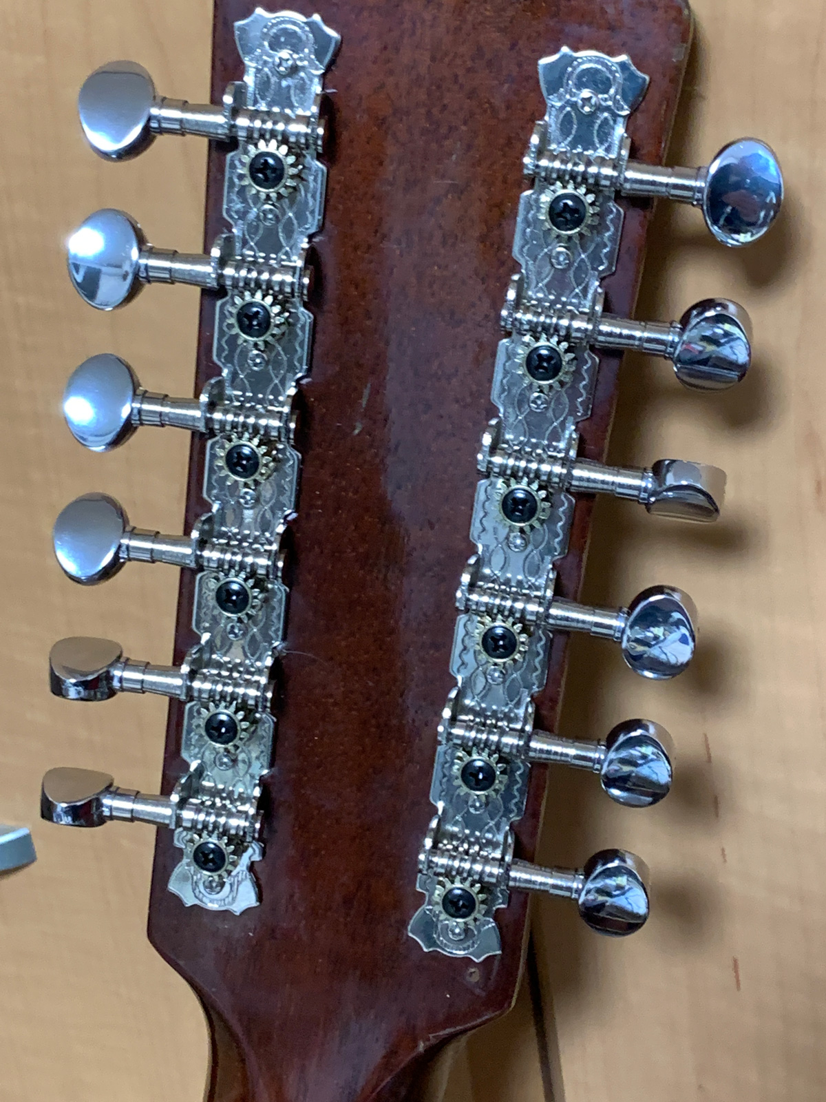 画像 12弦ギターメンテ 2021.12.212025.04.16 春日楽器 W-13 ジャンク品 3000円恐らく1950~1960年代前半の日本製 リフレット、JESCAR#55090ペグ、Yibuy6L6Rナット、GRAPH TECH PQ-1500-00ゼロフレット交換ブリッジ・サドル調整ネック調整、PG貼り付けERNIE BALL Earthwood 12-String LIGHT 作業完了後 試奏